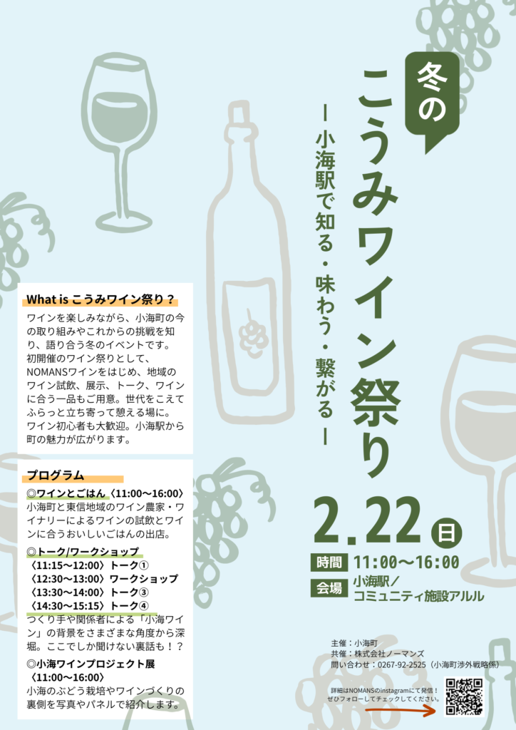 そんな今を味わえるのが、今回、初めて開催する冬のこうみワイン祭りです!